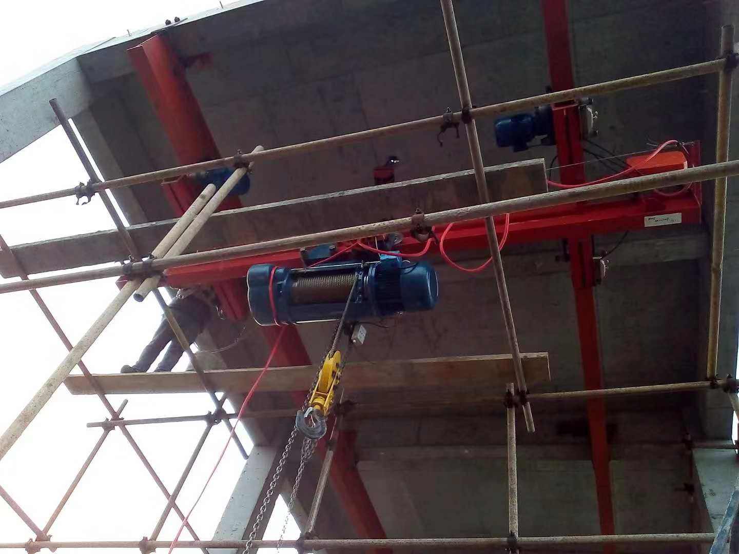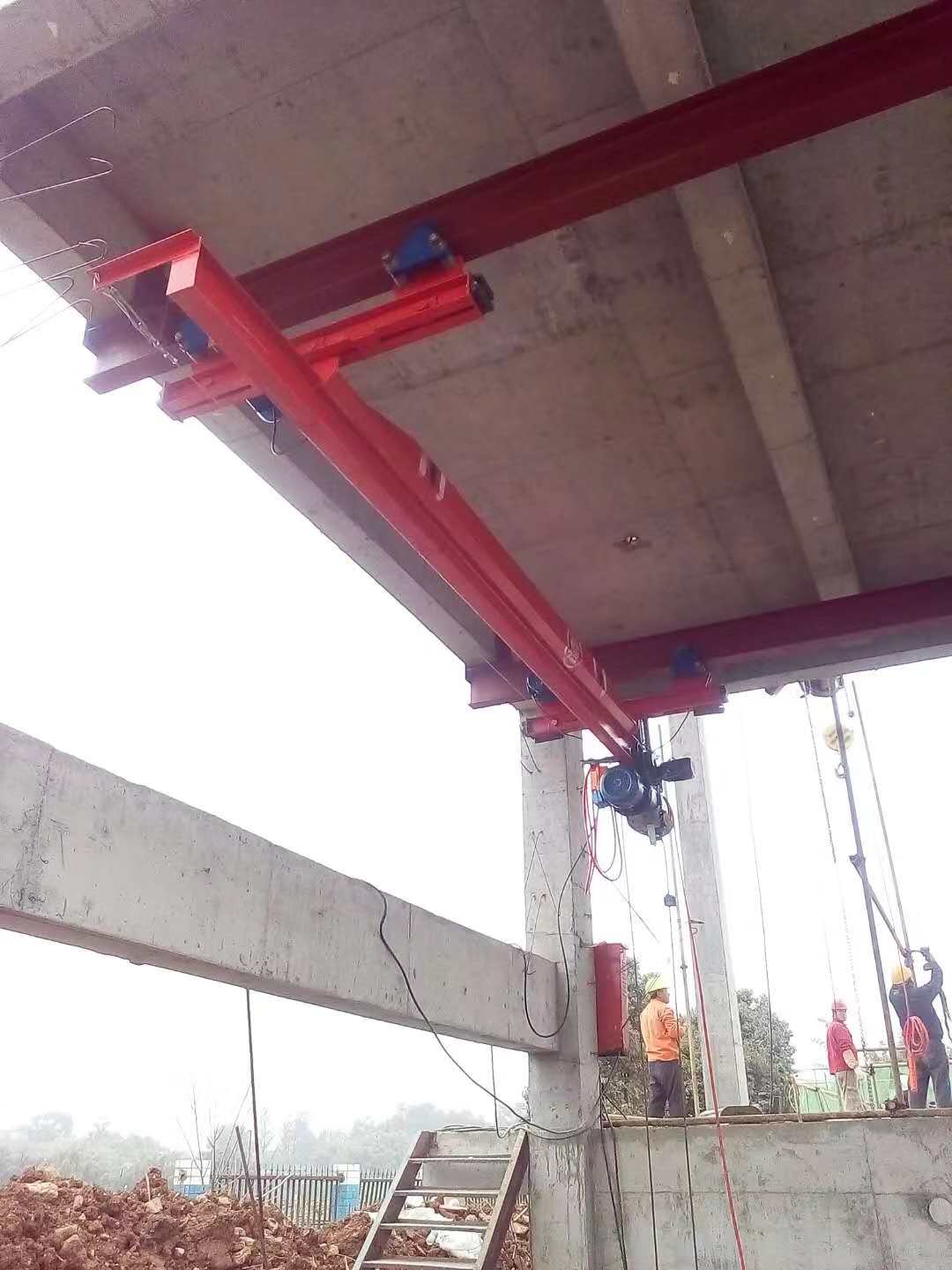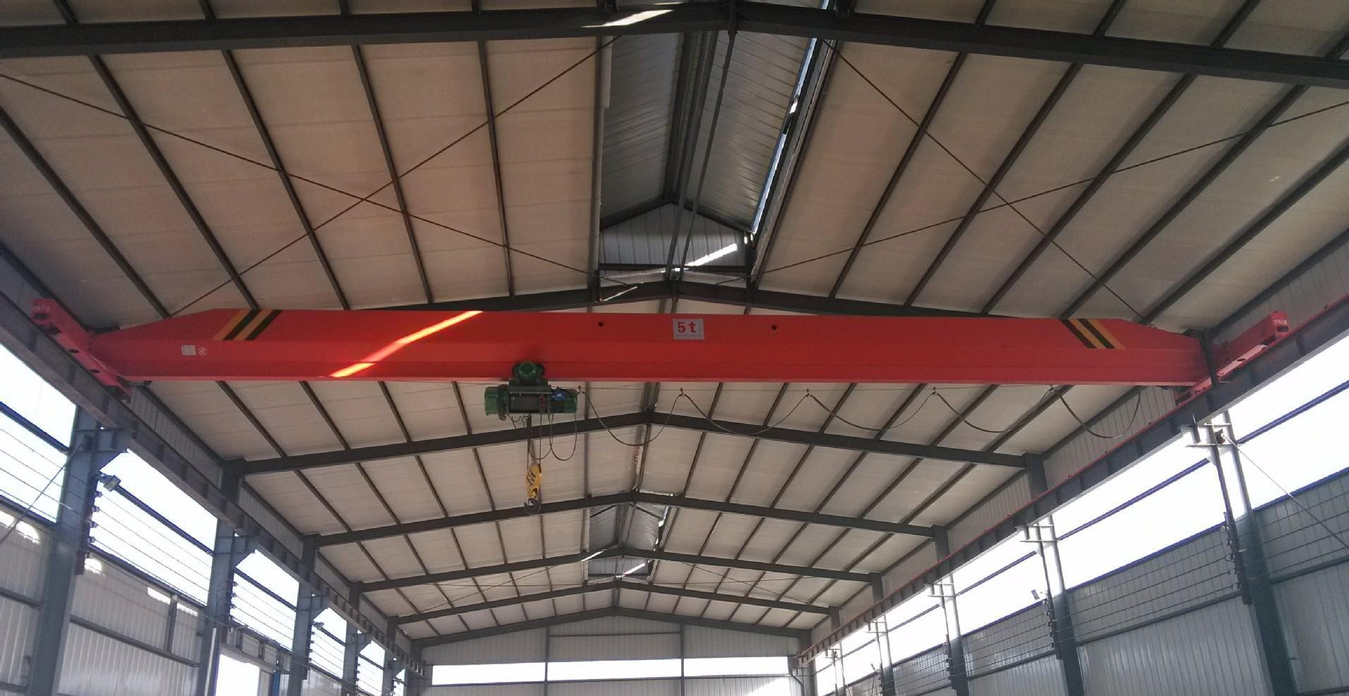 LX型電動單梁懸掛起重機與CD1、MD1型電動葫蘆配套使用,構成有軌運行的單梁起重機。該懸掛起重機的運行軌道使用用工字鋼,主梁兩端懸掛于工字鋼下方前后運行,是小噸位起重設備。LX型單梁懸掛起重機多用于機械制造、裝配車間及倉庫等場所